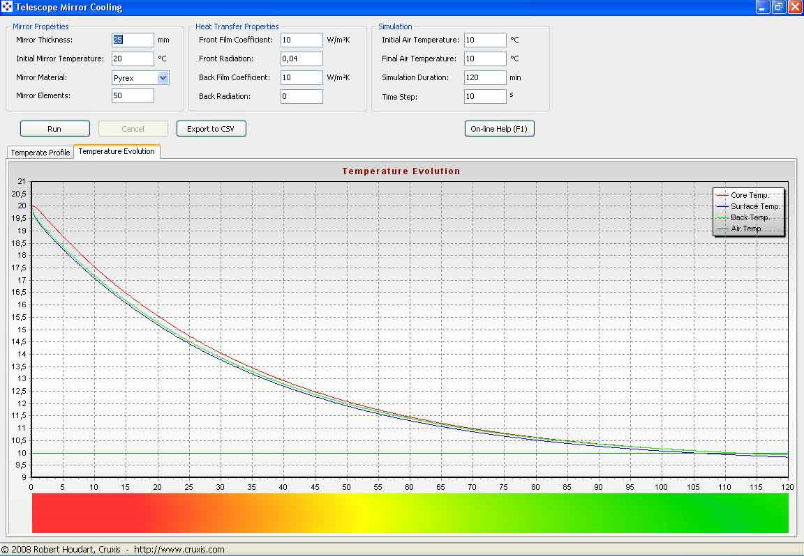 | Il primo aspetto, anche più facile da ragionare è quello relativo agli spessori dei vetri. Facile perché basterà chiedere al nostro ottico di stare sul “fine” se vuole, e se non vuole dovremo ripiegare in sistemi di correzione termica alternativi. Da questo spessore dipende poi anche la meccanica. Attenzione: facciamo una esposizione un po’ semplicistica e ristretta essendo questa una rivista di divulgazione e non un testo per specialisti, ce ne scusiamo con tutti coloro che hanno competenze per andare oltre a quanto esponiamo. Rimaniano sul nostro specchio da 250 – vetro pyrex (oggi non si produce più, al suo posto Schott propone il Supremax 33 di costo elevato ma di caratteristiche analoghe). Per rendere il concetto semplice ed immediato abbiamo usato un programmino free a cui raccomandiamo ai nostri lettori di andare a giocarci un po’ considerando anche i diversi tipi di vetro e non solo gli spessori (www.cruxis.com e il programmino free è Telescope Mirror Cooling).