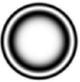 The picture adjacent is of the idealised fringes from a 6″ F/8 generated by computer. If you look carefully at the inner black fringe in this picture, you will note a well defined outer edge with a sharp transition between black and white, – but the inner edge of the fringe is less distinct with more and longer shades of grey.