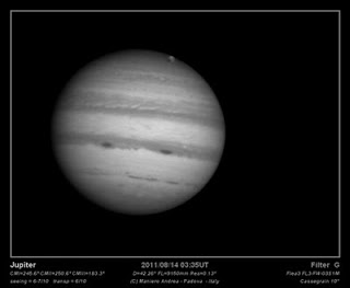 Here is a good quality picture obtained with low average seeing, when Jupiter was not in the best position to be photographed (Andrea Maniero – 13 Aug 2011).